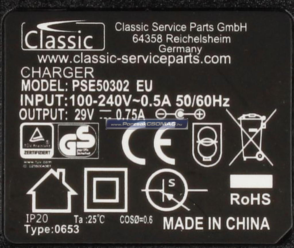 Akkumulátor töltő 29V 0,75A porszívóhoz PSE50302EU
