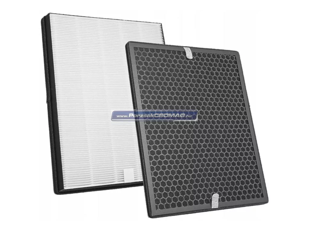Ha kompatibilis és költséghatékony szűrőkészletet keres, jó helyen jár. Megbízható szűrőkészlet a légtisztítójához, amely egyszerű cserére lett tervezve. Teljes funkcionalitást és kompatibilitást biztosít Philips légtisztítójával. Magas szűrési teljesítmény. Helyettesíti a NanoProtect FY1410/30, NanoProtect FY1413/30 szűrőket. Kifejezetten a beltéri levegő minőségének javítására tervezték, hogy kényelmes, egészséges környezetet teremtsen. Légtisztító szűrőink hatékonyan távolítják el a szennyeződéseket és szennyező anyagokat a beltéri levegőből, beleértve a port, finom port, polleneket, allergéneket és kórokozókat, mint például baktériumok és penészspórák. Ezenkívül a cigarettafüst, kipufogógázok, vegyi gőzök és nem kívánt szagok is hatékonyan eltávolításra kerülnek a beltéri levegőből. A KÉSZLET TARTALMA: 1x aktív szénszűrő, amely semlegesíti a kellemetlen szagokat és csökkenti a TVOC-t. Színe: fekete. Hossz: 36,5 cm, Szélesség: 28 cm, Magasság: 1,1 cm, hab tömítéssel. 1x HEPA szűrő, amely kiszűri és eltávolítja az ultra-finom részecskéket a levegőből, javítva a robotporszívó tisztítási hatékonyságát és csökkentve a háztartási szagokat. Színe: fehér fekete kerettel, hab tömítéssel. Ajánlott a szűrőegységek rendszeres cseréje a használat gyakoriságától függően. Csereszűrő készletünkkel könnyedén cserélheti szűrőit, hogy biztosítsa a szellőzőegység magas hatékonyságát. Javasoljuk, hogy a szűrőt 12 havonta cserélje, a használat gyakoriságától függően. CE és RoHs tanúsítvány - teljesíti az üzembiztonság minden irányelvét. Kompatibilis eszközök: Philips AC1214, Philips AC1214/10, Philips AC1215, Philips AC1217, Philips AC1217i, Philips AC2729, Philips Series 1000